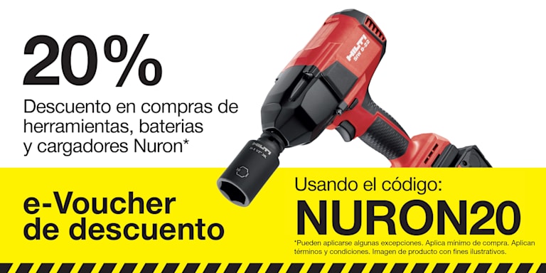 Obtenga un descuento del 20% en compras de herramientas, baterias y cargadores Nuron de Hilti. Código: NURON20