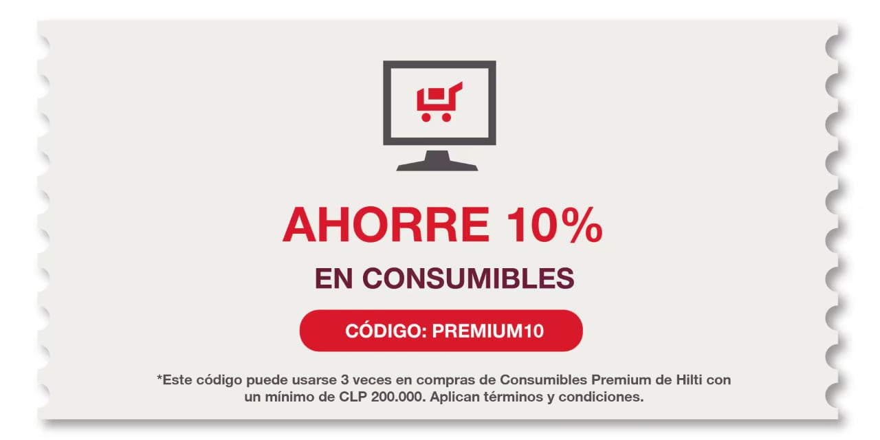 *Válido en compras de Consumibles PREMIUM de Hilti con un mínimo de CLP 200,000 en su pedido