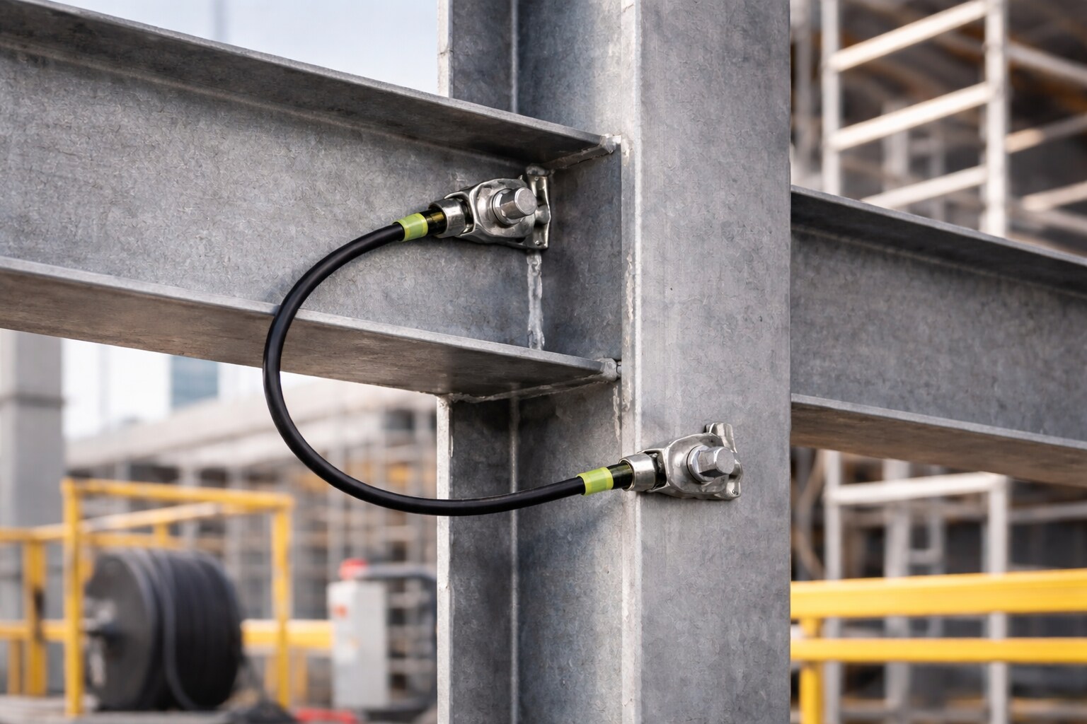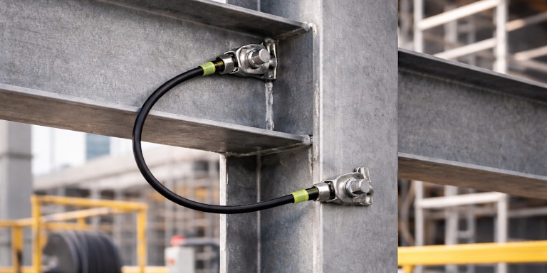 • Continuidad eléctrica Une elementos metálicos, como bridas, bandejas de cables o estructuras de acero, asegurando que la corriente eléctrica tenga un camino seguro hacia tierra.